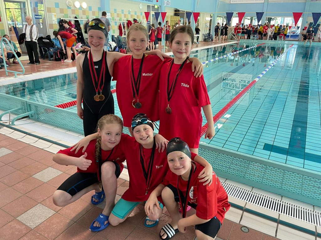 Hier konnte Tilda Dünhaupt wieder einmal ihre gute Form zeigen und war mit 2 neuen Bestzeiten und 3x Gold bei 3 Start die erfolgreichste weibliche Aktive des HSV. Tilda Lindau – sie hatte Premiere – freute sich über Bronze über 50m R und 50m B und holte über 50m B die Silbermedaille. Neele Sophie Schmidt gewann über 50m R die Silbermedaille und schwamm eine neue Bestzeit! Charlott-Julie Roquette verbesserte sich 2x und kam dabei auch jeweils auf den Vierten Platz. Etwas vom Pech verfolgt war Lotta Winkelmann; sie brachte nur die 50m Freistil zum erfolgreichen Ende und holte sich da aber in BZ den 2, Platz und damit die Silbermedaille.