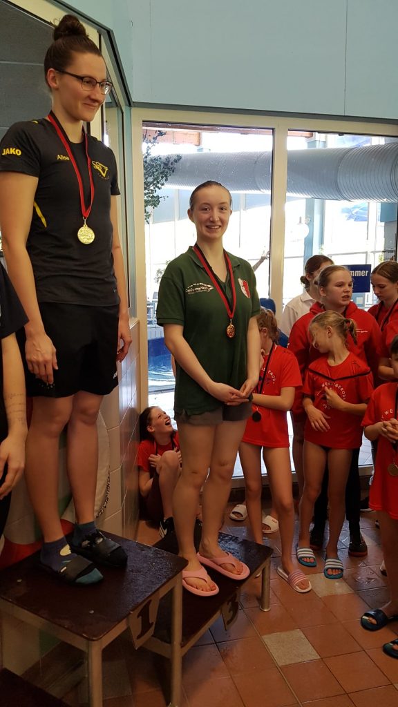 Lena Ledderbohm (04) gewann Bronze über 50m R und 100m B; über 50m Brust kam sie auf Platz 2. Lena schwamm 3 neue Bestzeiten.