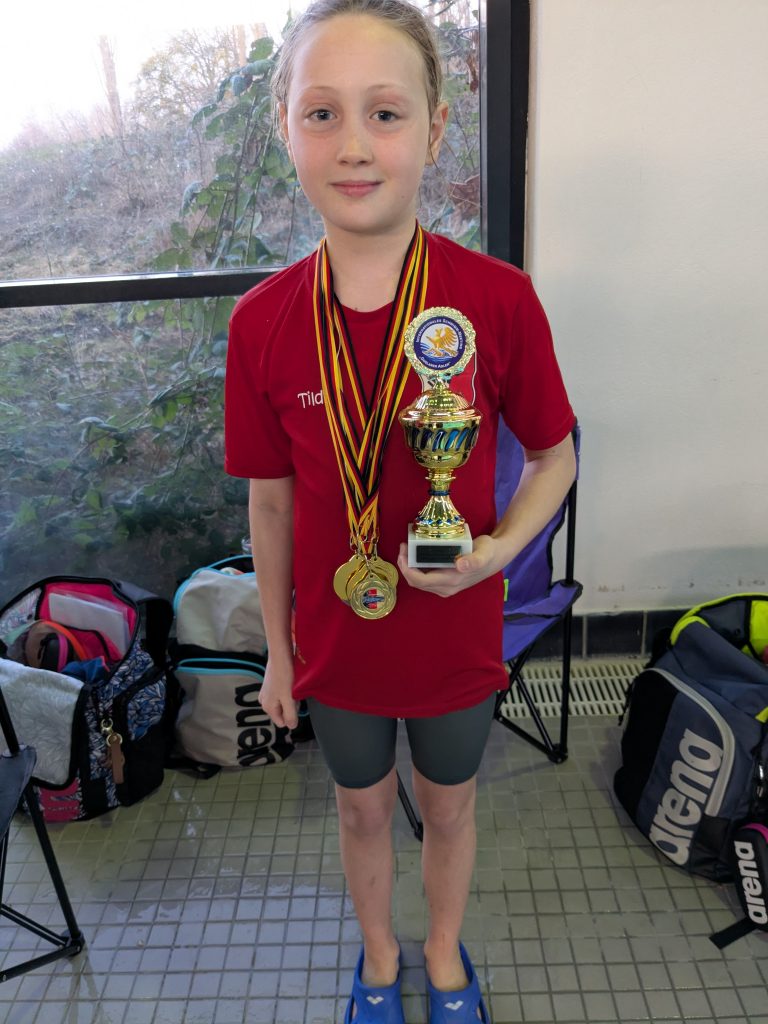 Tilda belohnte sich mit Silber über 50m F und Bronze über 100m Lagen und 2 vierten Plätzen über 50 und 100m Rücken. „Ich bin richtig stolz auf dich!“